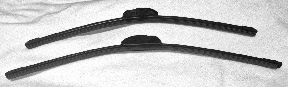 VW T3 Uprated Windscreen Wipers 530mm and 500mm (21″ and 20″) Flat Blade. Complete set of Bosch Flat blade wiper for T3 models.